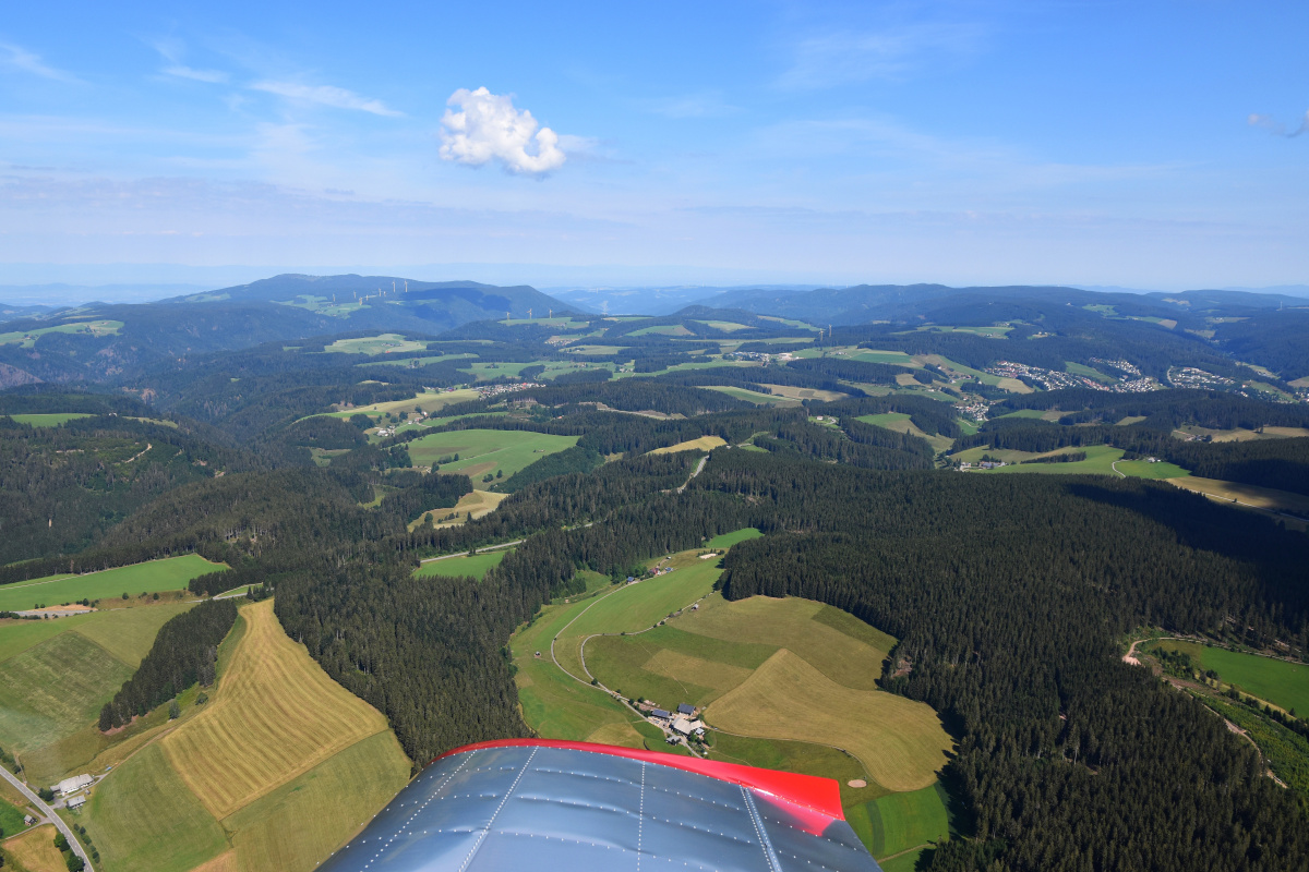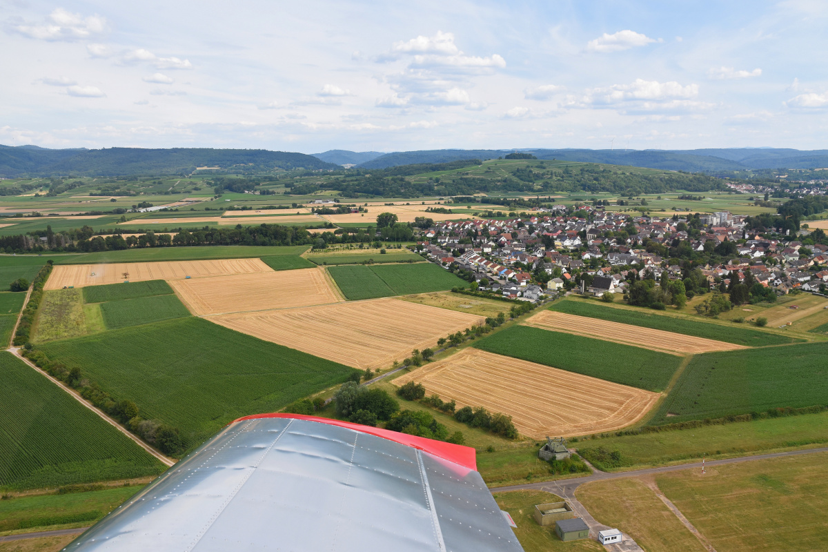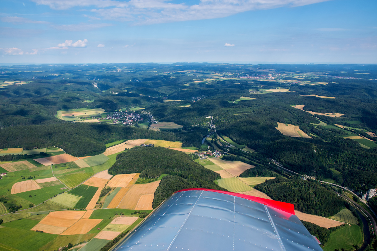 Nach der Hälfte der Bahn sind wir schon relativ hoch und können nach rechts zum Wegpunkt Echo abbiegen. Dann geht es auf 4700ft, um die Berge des Schwarzwaldes überfliegen zu können. Etwas weiter nördlich als unsere Flugroute am Morgen geht es mit gutem Rückenwind zurück nach Bayern. Durch eine Winddrehung gegen Mittag kommen wir in den Genuss, auf Hin- und Rückflug Rückenwind zu haben. So schaffen wir es in guten zwei Stunden zurück nach Ampfing. Dort landen wir nach gut sechs Motorlaufstunden über den Tag verteilt gegen 18.25 Uhr.