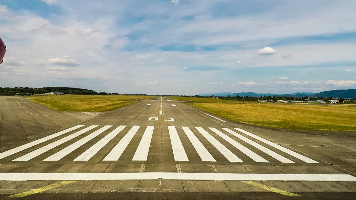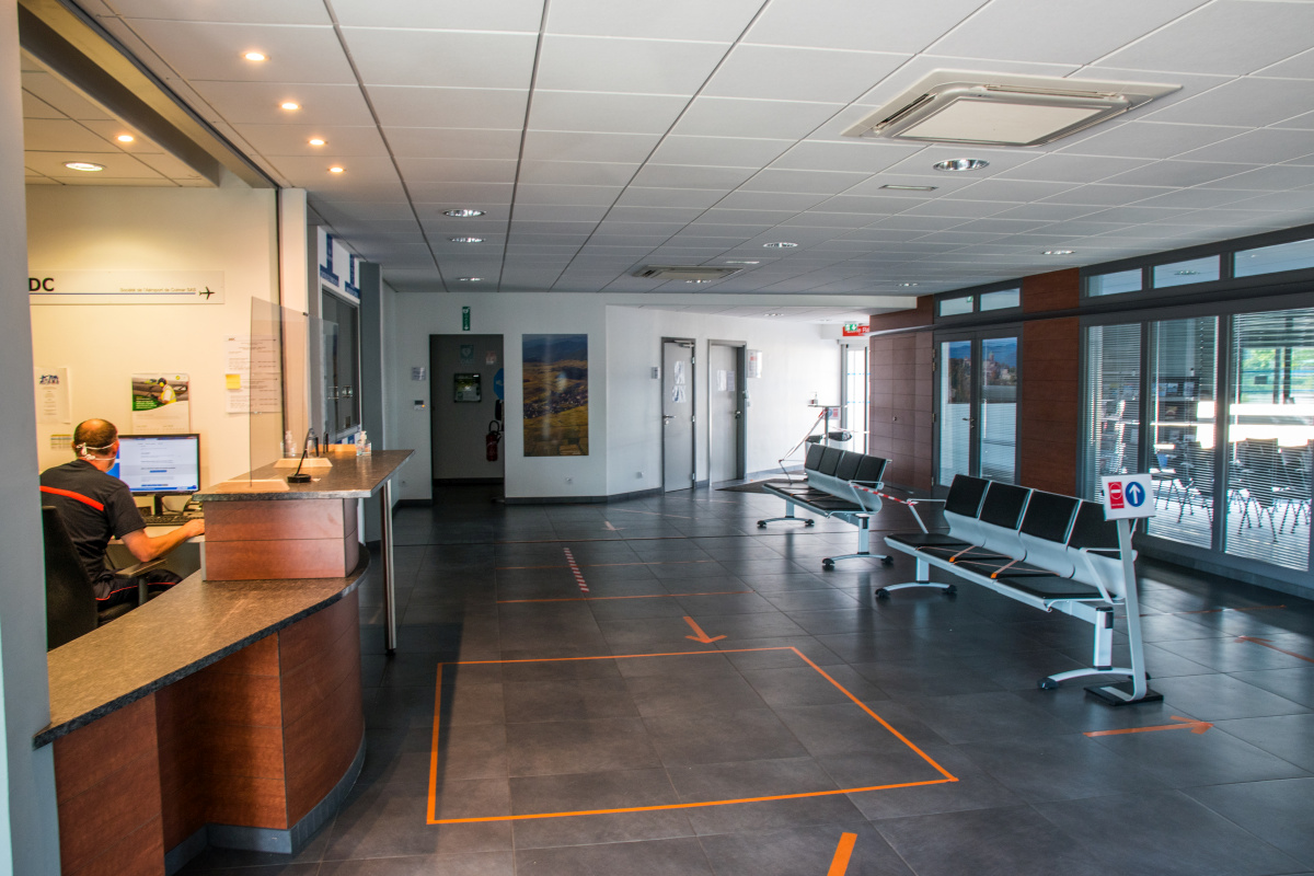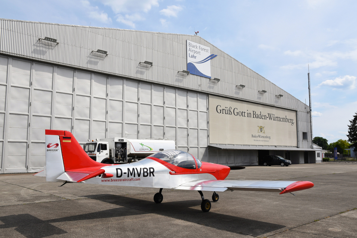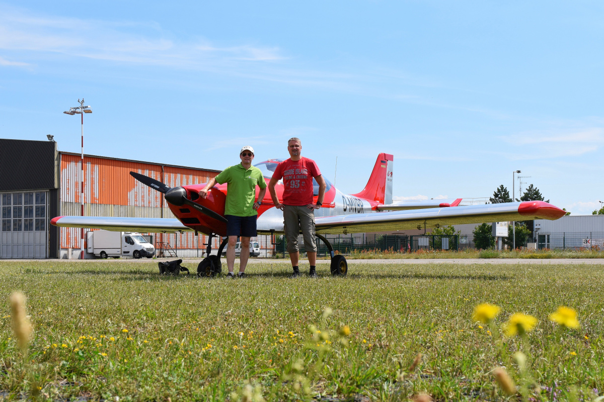 Auf dem riesigen Vorfeld, auf dem rein gar nichts los ist, dürfen wir parken. Nur gut 20 Flugminuten sind es von Colmar hierher.