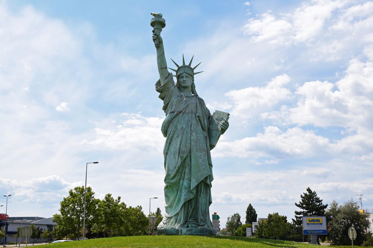 Interessant allerdings ist die 150m vom Terminal entfernte Freiheitsstatue. Man wähnt sich schon ein bisschen wie in New York. Das ist aber auch kein Wunder, denn die Statue ist 1:1 dem Original von New York nachgebaut. Nur ist sie mit 12m nicht so groß wie ihr Pendant. Sie wurde im Jahr 2004 zum 100. Todestag des Künstlers Auguste Bartholdi, welcher hier in Colmar geboren wurde, errichtet. Es war kein geringerer als Bartholdi, der die New Yorker Freiheitsstatue Ende des 19. Jahrhunderts entworfen und gebaut hat.
