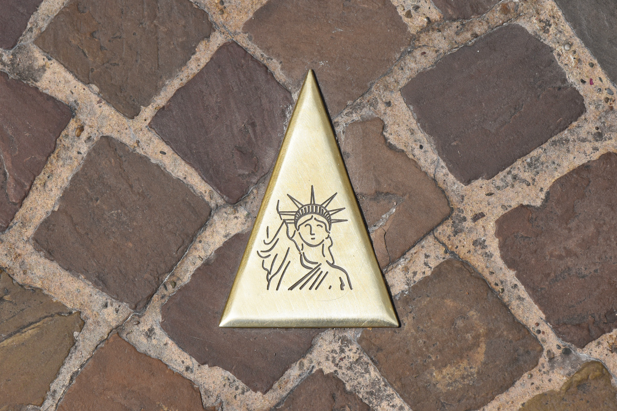 Am Boden sehen wir immer wieder Pfeile mit der Freiheitsstatue. Diese zeigen in Richtung der verschiedenen Sehenswürdigkeiten der Stadt.
