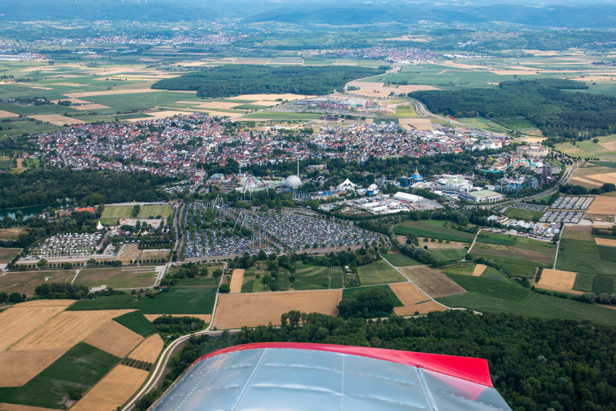 Wie vermutet bekomme ich keinen Kontakt zu Langen Information. Die Funkabdeckung hier in diesem Bereich ist nicht gut. Entlang des Rheins und vorbei am Europapark Rust fliegen wir nach Norden.