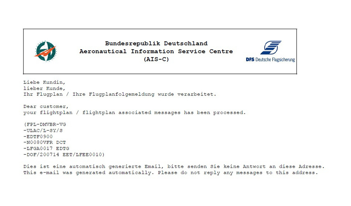 Bereits vor dem Start in Ampfing hatte ich unseren Flugplan für den Weiterflug bei der DFS aufgegeben. Unsere Startzeit läuft für 11.00 Uhr. Das passt perfekt, um aufzutanken und noch einmal das Routing bis zu unserem Ziel durchzugehen.