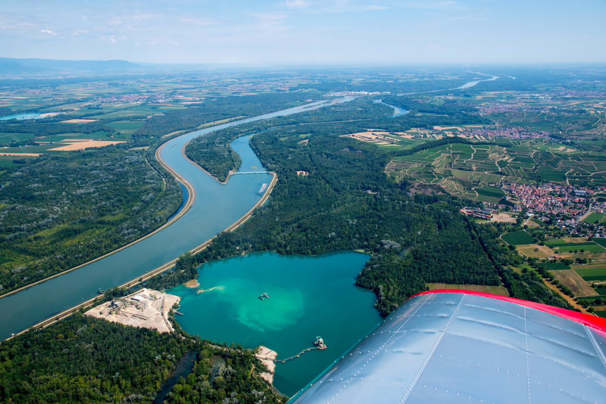 Nach dem Verlassen der Platzrunde melde ich mich bei Bale Info an. Doch da wir nur noch wenige Minuten von der Grenze entfernt sind, werden wir gleich auf die nächste Frequenz verwiesen. So überfliegen wir den Rhein und die Grenze zu Deutschland.