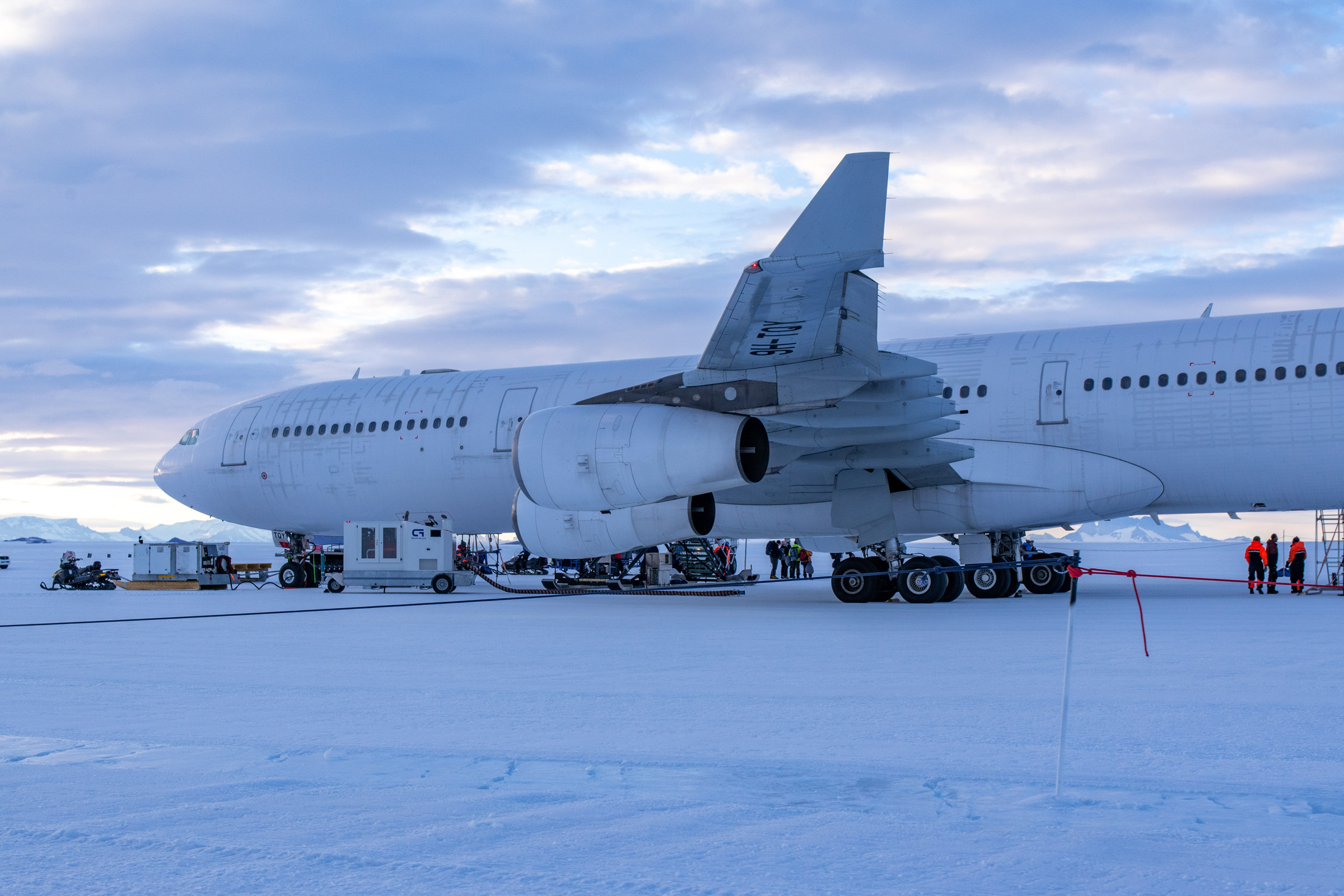 Einmal wöchentlich fliegt die portugiesische Charterfluggesellschaft HiFly mit einer A340-300 vom südafrikanischen Kapstadt in die Antarktis zur Wolf’s Fang Runway. Hinter dem ganzen steckt das Unternehmen White Desert. Der Reiseveranstalter hat sich auf Luxusreisen zum kältesten Kontinent der Erde spezialisiert.