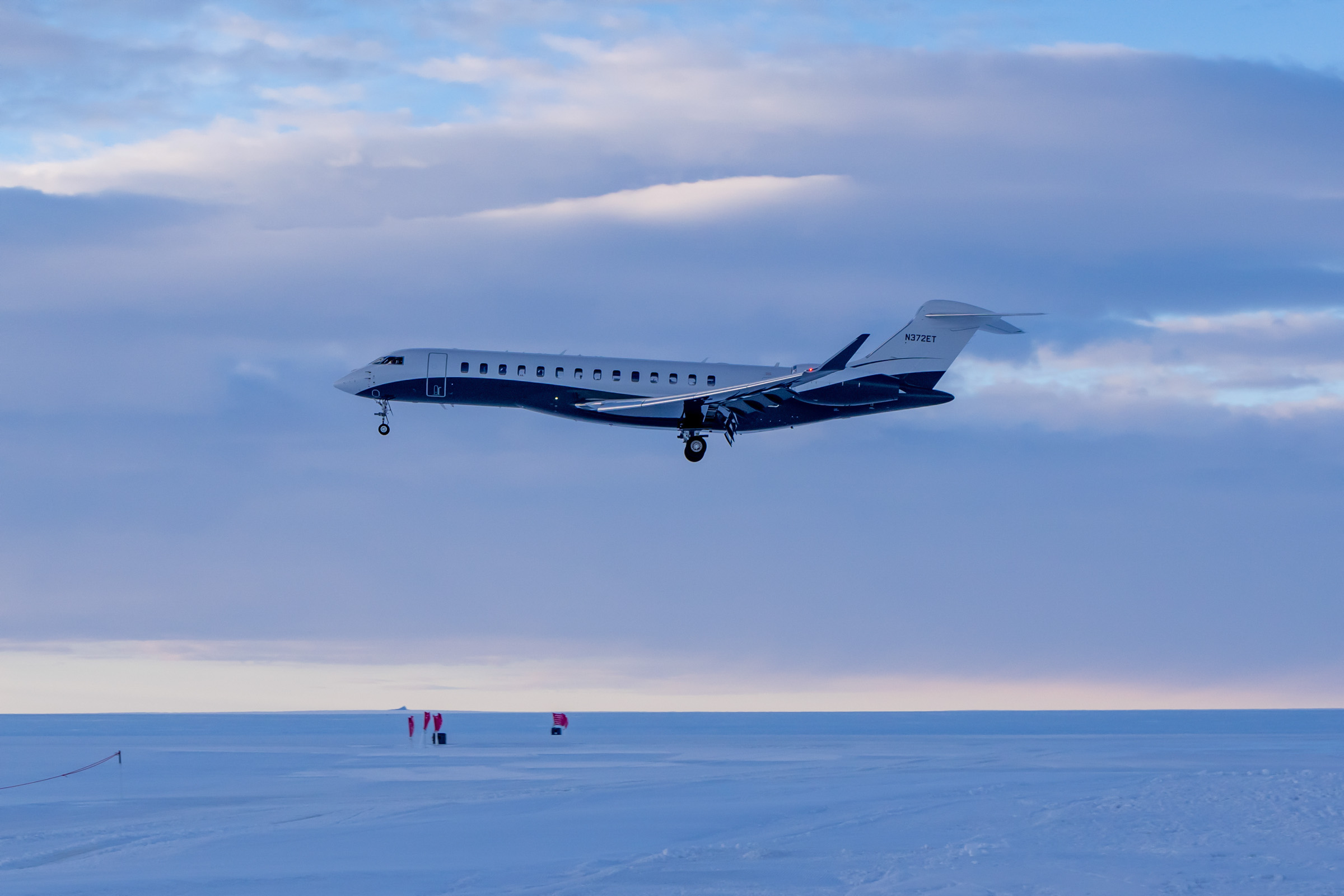 - an diesem Abend landet sogar noch ein zweites Flugzeug – eine private Global 7500. Sie war dem A340 von Kapstadt aus mit einer halben Stunde Abstand gefolgt und holt den Besitzer von seinem Antarktis-Urlaub ab