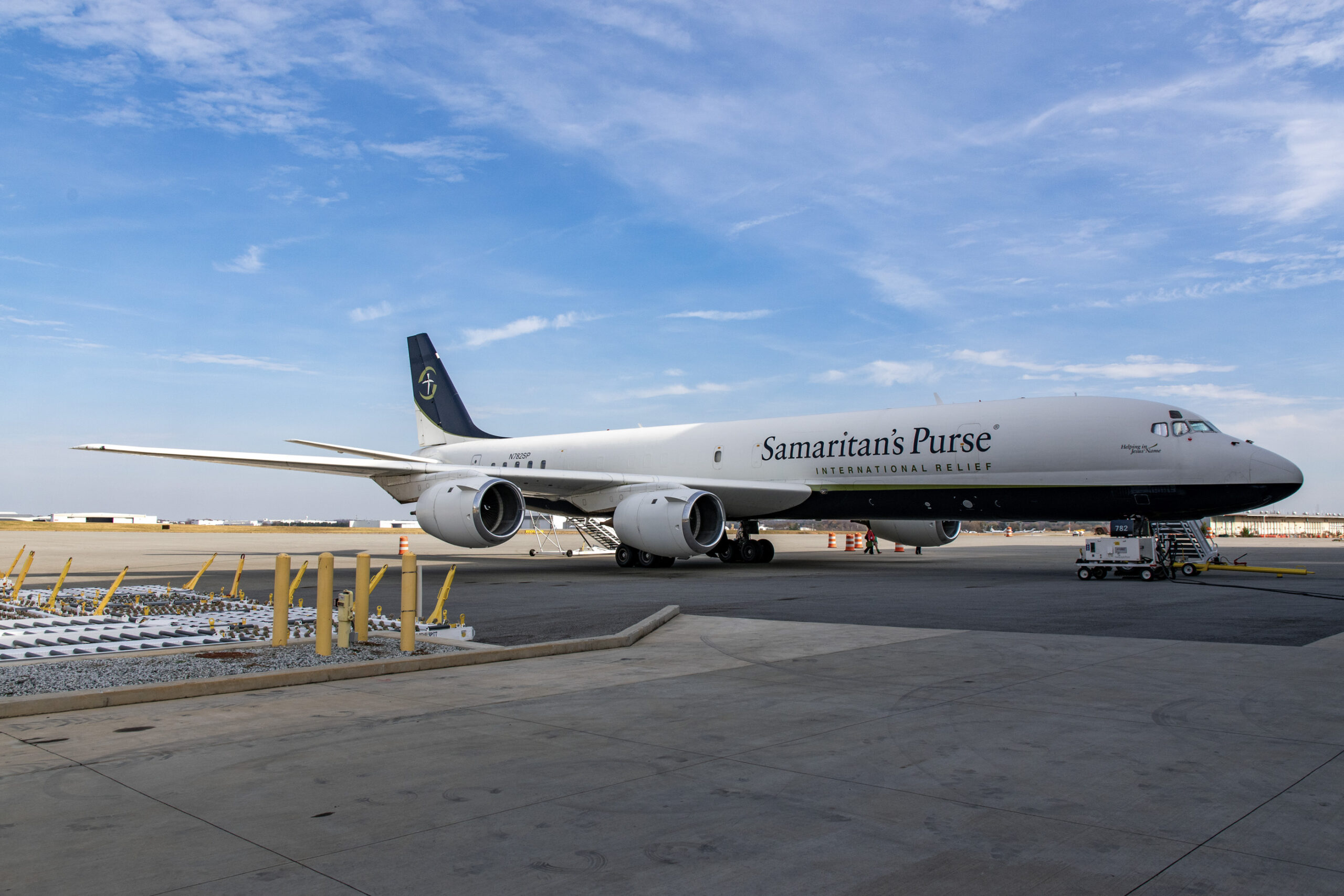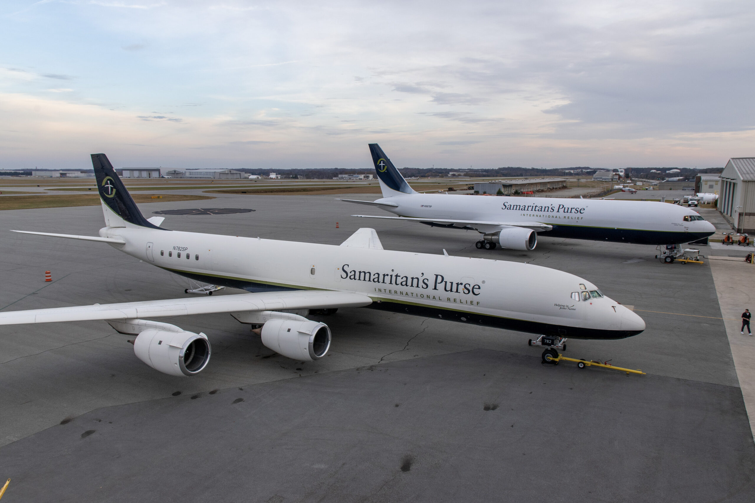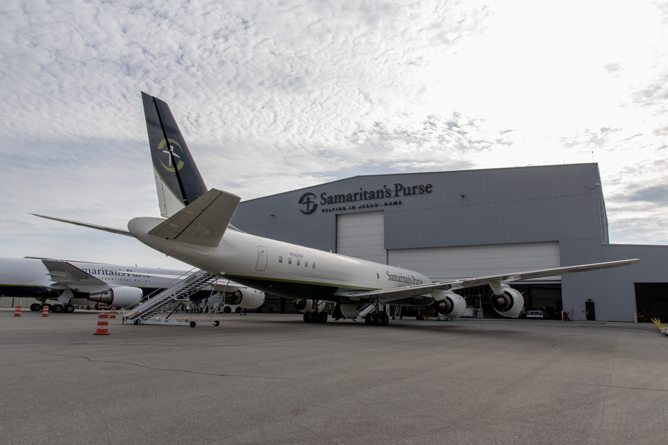 Samaritan’s Purse wurde im Jahr 1970 durch Robert Pierce gegründet, welcher bereits 1950 die Hilfsorganisation „World Vision“ ins Leben gerufen hatte. Man setzte sich zum Ziel, Menschen, die Opfer von Krieg, Armut, Naturkatastrophen, Krankheiten und Hungersnöten geworden sind, mit Gottes Liebe zu helfen. Nach dem Tod von Robert Pierce übernahm Franklin Graham im Jahr 1979 das Amt des Präsidenten. Der heutige Sitz der Organisation ist in Boone, North Carolina. Internationale Büros agieren in Kanada, dem Vereinigten Königreich, Australien und Deutschland. Das große Kreuz am Heck der DC-8 und der Schriftzug „Helping in Jesus’ name“ unterhalb der Cockpitfenster untermalen den Willen zur Nächstenliebe. Bis November 2021 operierte die DC-8 vom Flughafen Greensboro und Wilkes County Airport in North Carolina von jeweils wechselnden Abstellflächen. Dann wurde ein eigener Hangar mit Wartungshalle, Lager, Büros, Besprechungsräumen sowie einem großzügigen Empfangsbereich am Flughafen Greensboro gebaut und als „Airlift Response Center“ eingeweiht. Greensboro erwies sich mit seiner großen Landebahn und geringem Linienverkehr als ideal für Samaritan’s Purse. Auch die Ein- und Ausreise für internationale Flüge ist hier angenehmer und einfacher als auf anderen stark frequentierten Flughäfen. Im Falle einer Anforderung für einen Hilfsflug war die DC-8 innerhalb von 24 Stunden bereit für den Abflug. Mit Ausnahme von umfangreichen Inspektionen wird die Wartung vor Ort mit zertifiziertem Personal durchgeführt.  Das Lager beeindruckt mit einer gewaltigen Anzahl von DC-8-Ersatzteilen aller Art. Von der kleinsten Schraube über eine Vielzahl von Reifen bis hin zu einem kompletten einsatzfähigen CFM56-Ersatztriebwerk, alles fein säuberlich beschriftet und einsortiert.