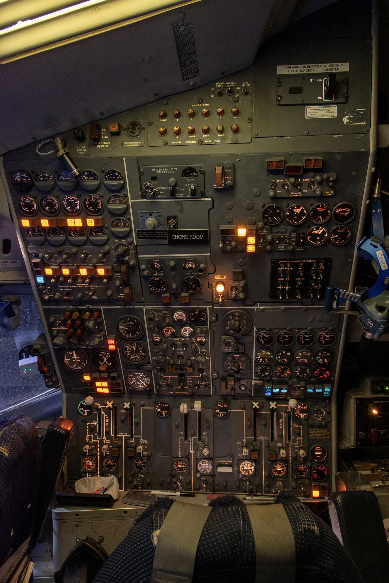 Der Bordingenieur hat sein „Reich“ direkt hinter den Piloten. Sein Bedienfeld in der Samaritan’s Purse ist sogar noch im Originalzustand und sieht aus wie vor wenigen Wochen aus der Fertigung gekommen. „Wir haben immer sehr gut darauf aufgepasst“, schwärmt Joe Proffitt. Der 72jährige kam im Jahr 2020 als Bordingenieur zu den Samaritern. Nach 26 Jahren Flugdienst beim Militär und sieben Jahren als Bordingenieur auf der Boeing 727 bei der NASA wechselte er zu Airborne Express und war dort nicht nur als Bordingenieur auf deren DC-8 tätig, sondern auch als Trainer im Simulator. Dort trainierte er nicht nur Piloten von der NASA, sondern auch die von Samaritan’s Purse. „Auch im Reiseflug erfordert die DC-8 ständige Aufmerksamkeit. Denn alle Systeme müssen manuell bedient werden. Es gibt keine Automatik. Das Treibstoffsystem, bestehend aus acht Einzeltanks, ist relativ komplex. Auch das Hydrauliksystem unterscheidet sich von dem in moderneren Jets“, erklärt Proffitt. „Es gibt nämlich im Vergleich zu anderen Flugzeugen nur ein einziges. Dafür sind aber viele Systeme voneinander getrennt, sodass die DC-8 auch bei Hydraulikverlust noch fliegbar und zu landen ist.“ Proffitt kann auf der DC-8 ca. 4500 Stunden vorweisen. Was er nach deren Ausmusterung machen wird: „Ich werde vermutlich im Bereich „Operations“ bei Samaritan’s Purse weiterarbeiten.“