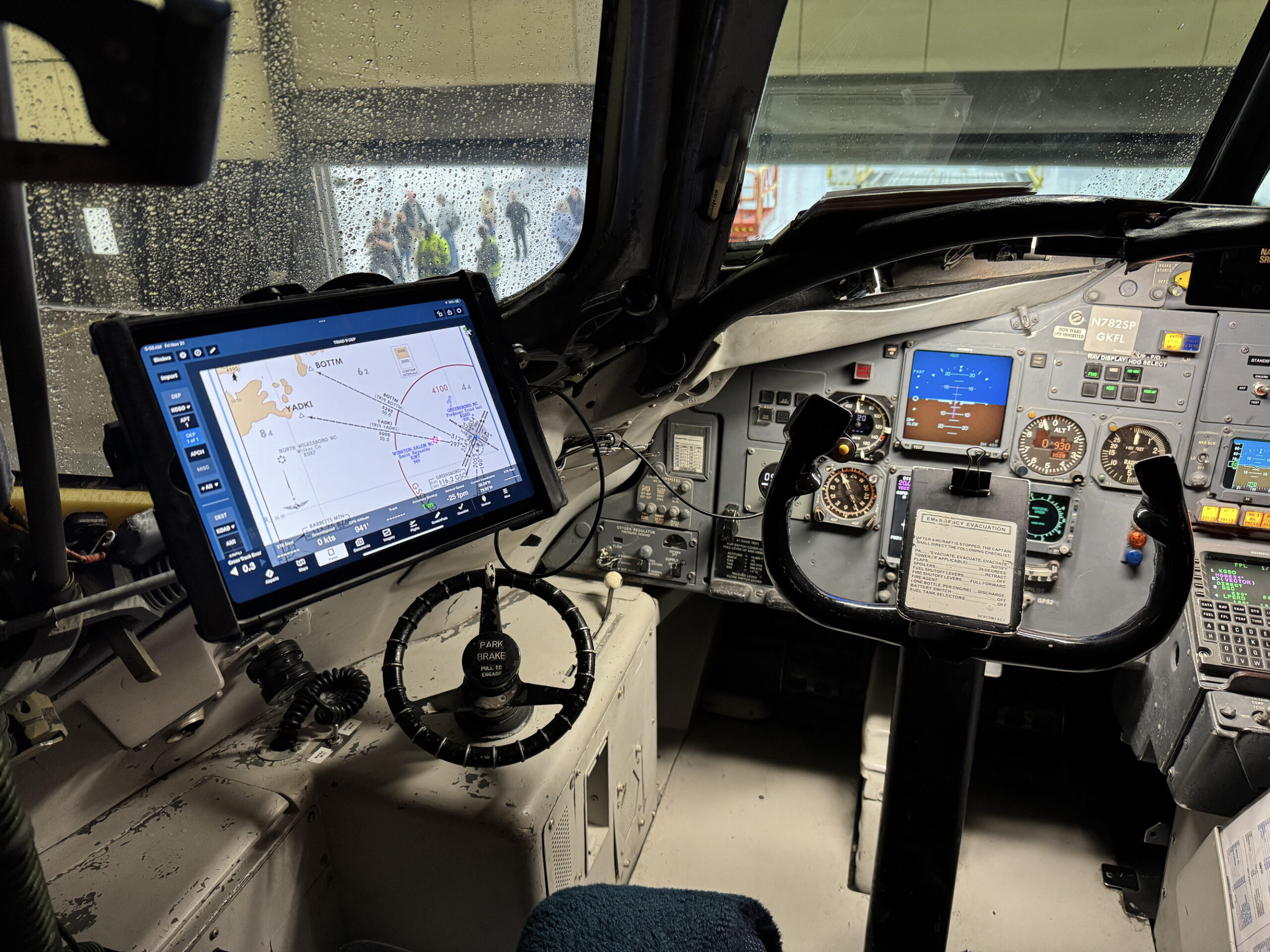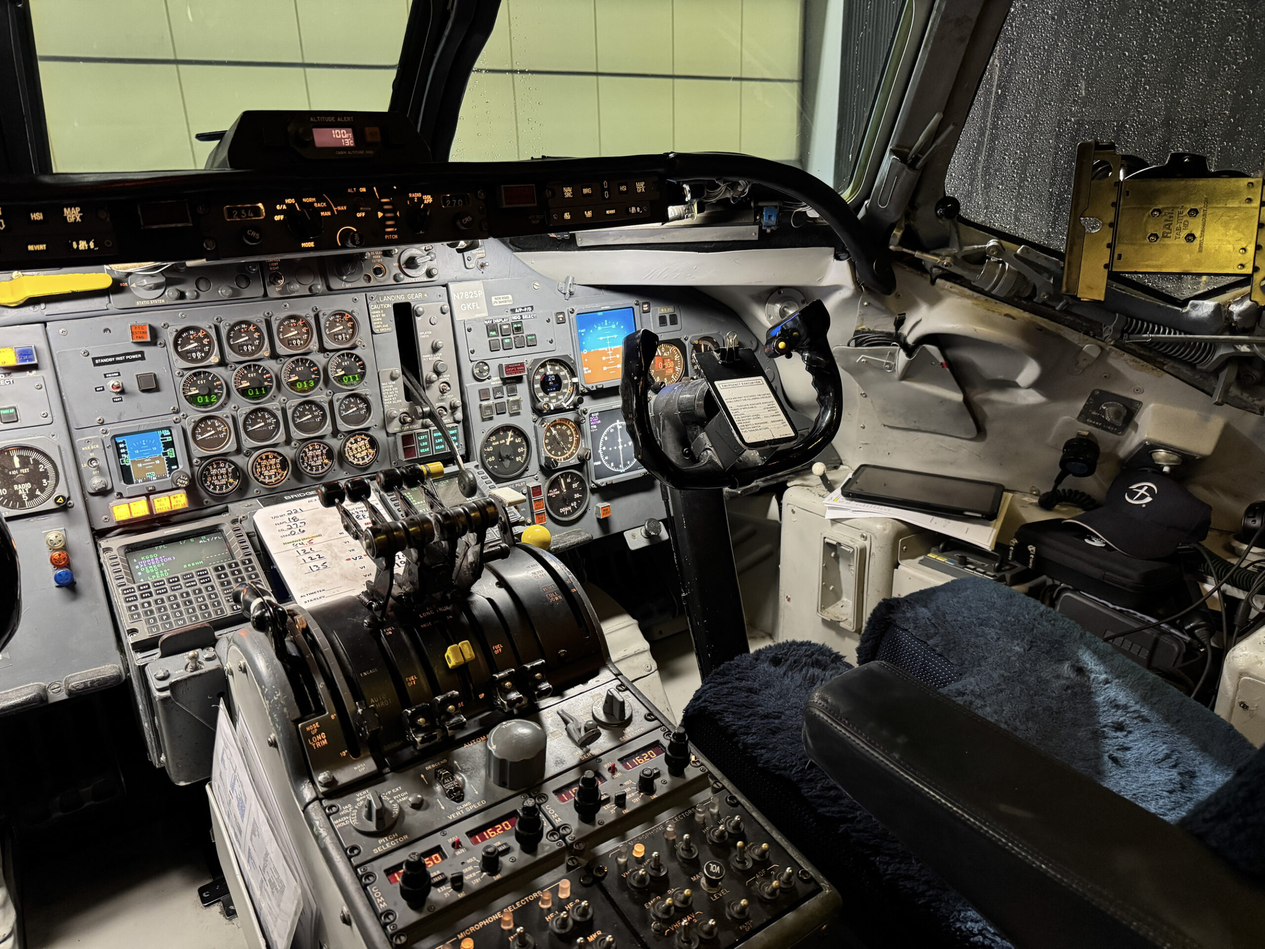 Notrutschen für Passagieren gibt es nur an den hinteren Türen. Weil vorne Fracht transportiert wird, gibt es dort nur Seile für eine Notevakuierung. Eine Stunde Flug mit der DC-8 kostet um die 10.000€. Da liegt es auf der Hand, dass das meiste Pilotentraining im Simulator stattfindet. Einen einzigen funktionierenden für die DC-8 gibt es noch auf der Welt. Er steht in Wilmington (Ohio), etwa sechs Autostunden von Greensboro entfernt.