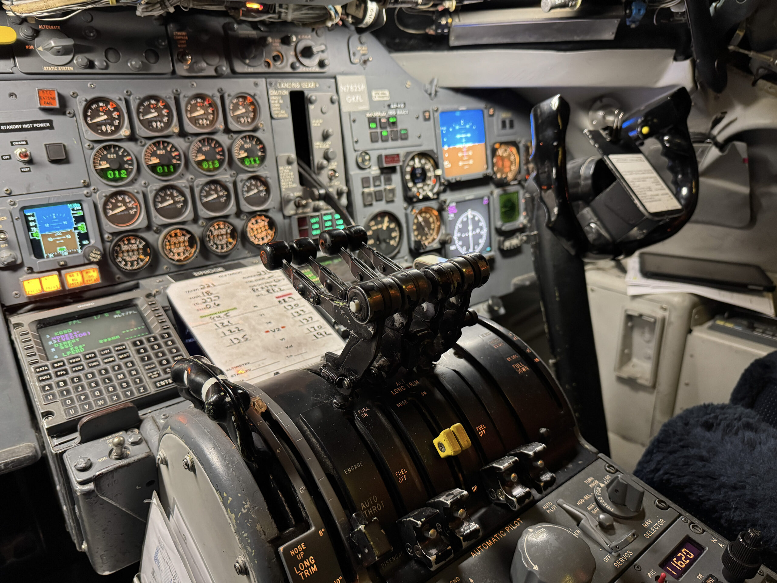 Kapitän Andy Klischer schiebt die vier Schubhebel nach vorne auf Startleistung. Gleich danach übernimmt sie Bordingenieur Joe Proffitt, um sie zu synchronisieren, denn eine Automatik hierfür gibt es nicht. Mit beeindruckendem Schub beschleunigt die einzige im US-Register verbliebene DC-8 auf der RWY 23L in Greensboro, North Carolina. Nach kurzer Zeit ist sie airborne und nimmt Kurs auf Florida. Mit 32 Passagieren und zwei Flugbegleiterinnen im hinteren Teil der Maschine ist die DC-8 heute ausgebucht. Der Frachtraum bleibt bis auf eine kleine Palette als Ausgleichsgewicht leer. Sowohl für Andy Klischer als auch die Passagiere ist es ein besonderer Flug. Es ist der letzte geplante vor der Ausmusterung und Klischers letzter mit einer DC-8, bevor er in Rente geht.