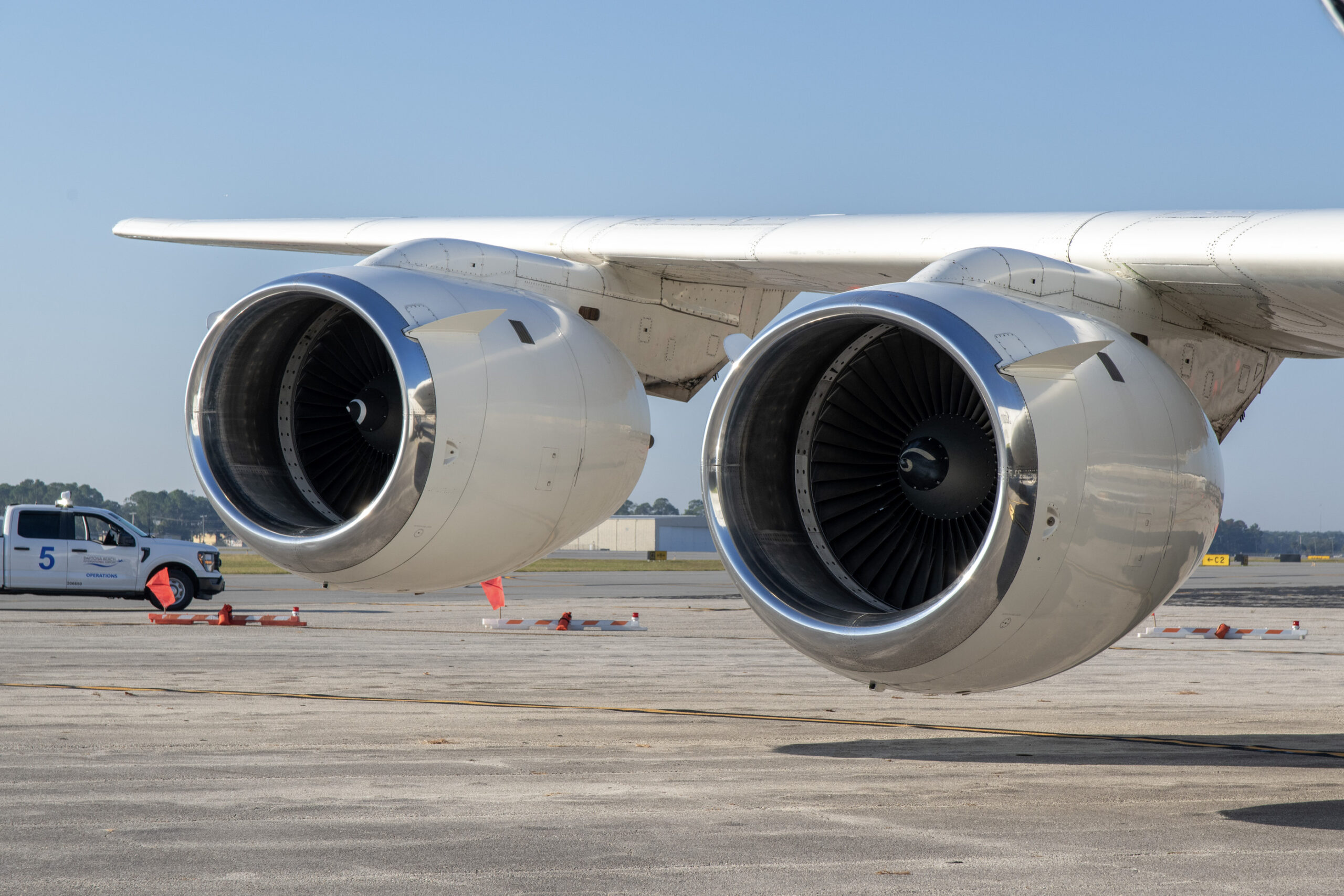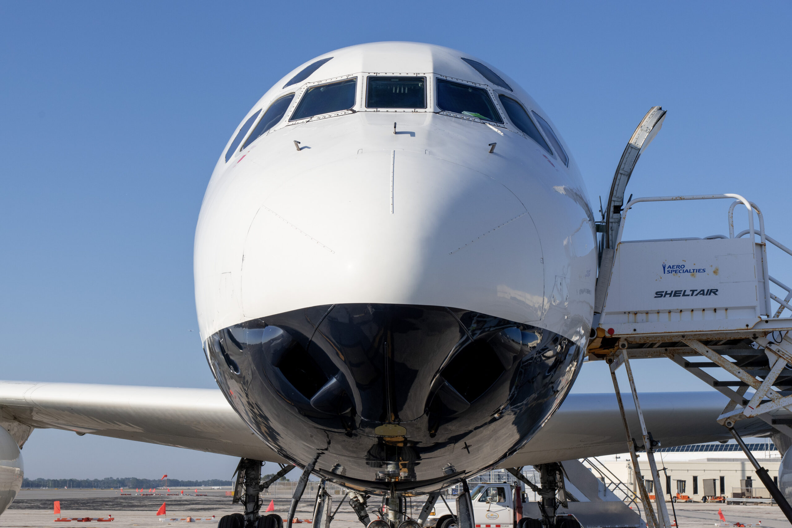 • das neue Flagschiff, die 767-300, bei der Ankunft in Greensboro nach einem Hilfsflug nach Jamaika