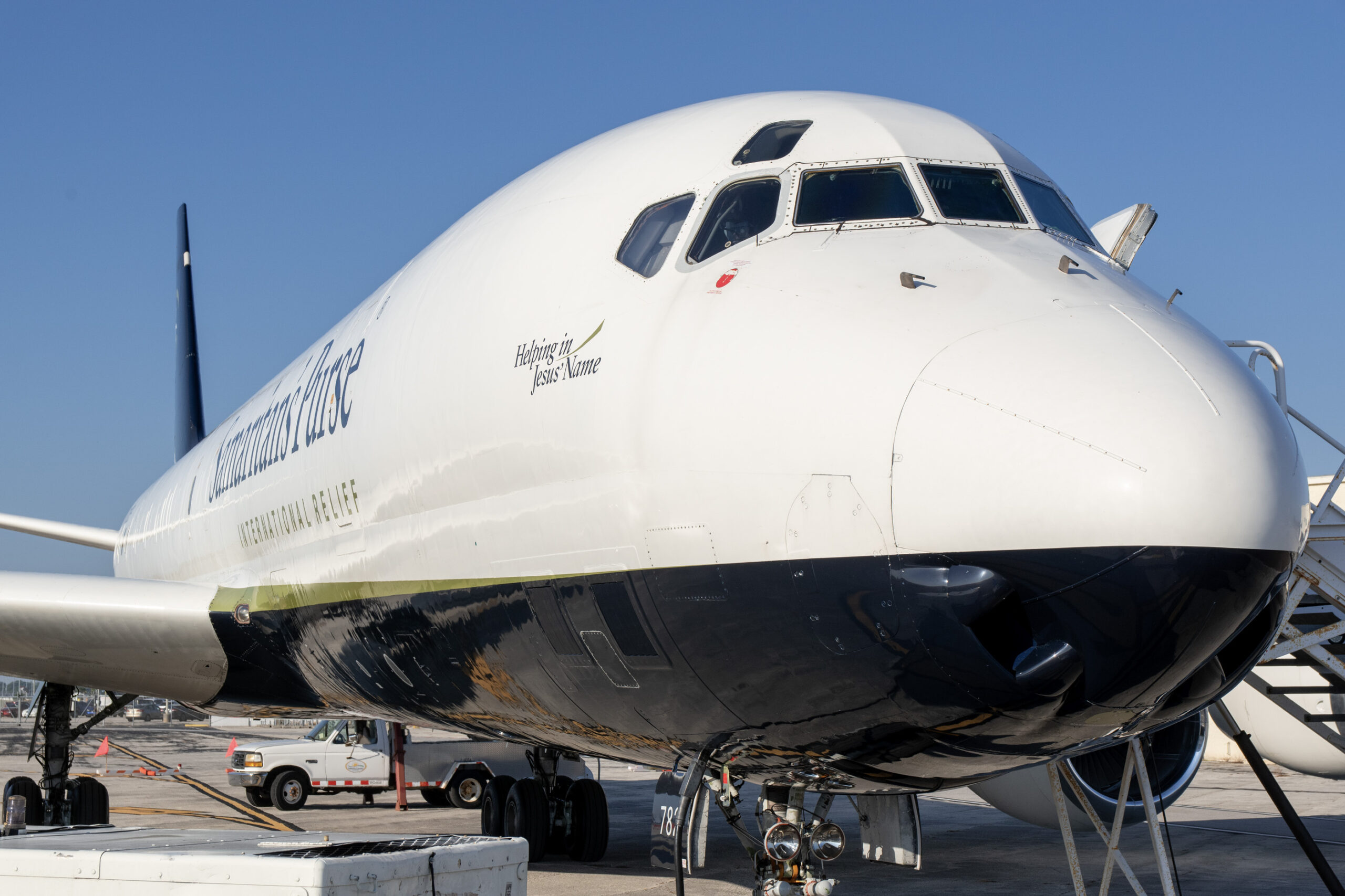 Da die DC-8 besonders robust gebaut ist, ist sie bestens in harschen Gegenden einsetzbar, in welchen modernere Flugzeuge nicht mehr ohne Probleme operieren könnten. „Die Flugplanung, also ob ein Flughafen in einem Krisengebiet anfliegbar ist und sämtliche damit verbundenen Genehmigungen, übernimmt eine externe Planungsfirma. Teilweise machen wir es aber auch selbst“, erklärt Danny Jacques, der für die Besucherbetreuung bei Samaritan’s Purse verantwortlich ist. „Die Infos, ob ein Krisengebiet anfliegbar ist, kommen von lokalen Regierungen und Kirchen.“ Bei schwierigen Anflügen wie z.B. auf den Flughafen von Kathmandu im Talkessel des Himalaya (2015 flog Samaritan’s Purse Hilfsgüter ins vom Erdbeben zerstörte Nepal), müssen die Piloten zuerst im Simulator trainieren, bevor sie den Flug in Realität durchführen dürfen.